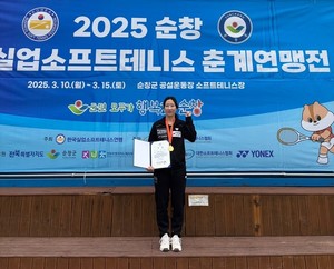 [안성 = 경인방송] 안성시청 소프트테니스팀 김유진 선수가 '2025 순창 한국실업소프트테니스 춘계연맹전' 여자 개인단식 부문 우승을 차지했습니다. 김유진은 지난 14일 전북특별자치도 순창군 다목적 소프트테니스장에서 열린 결승전에서 옥천군청 이수진 선수를 세트스코어 4-2로 꺾고 정상에 올랐습니다. 올해 문경시청에서 안성시청으로 이적한 김유진은 새 소속팀에서 출전한 첫 대회에서 값진 우승을 거뒀습니다. 이번 대회에서 안성시청 소프트테니스팀은 여자 일반부 단체전에서도 우승을 차지해 개인전과 단체전을 석권했습니다. 팀워크를 바탕으로 선