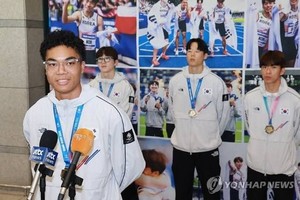 [김포 = 경인방송] 경기 김포 출신 조엘진 선수가 대한민국 육상 남자 400m 계주 대표팀의 하계 세계대학경기대회(U대회) 우승 소식을 안고 29일 인천공항을 통해 귀국했습니다.세계무대에서 당당히 금메달을 목에 걸고 귀국한 나마디 조엘진 선수(예천군청)는 김포에서 초·중·고를 졸업한 인재로, 대한민국 육상의 미래를 이끌어갈 유망주입니다. 폭풍 성장해온 조엘진 선수의 활약에 김포 시민 모두가 자부심을 느끼고 있습니다.이번 우승은 조엘진 선수와 함께 뛰어온 서민준(서천군청), 이재성(광주광역시청), 김정윤(한국체대) 선수의 끈질긴 노