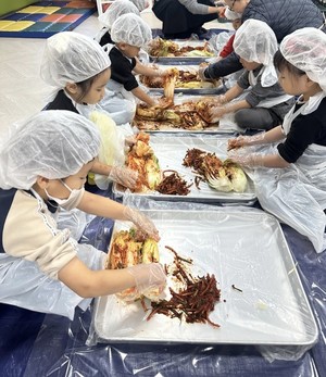 [김포 = 경인방송] 경기 김포구래초등학교병설유치원(원장 서재민)이 지난 최근 ‘오늘은 김장하는 날’이라는 주제로 김장체험 활동을 진행했습니다.이번 체험은 우리나라의 대표적인 전통문화인 김장 활동을 직접 경험하며 전통의 의미를 배우기 위한 교육 프로그램으로 마련됐습니다.유아들은 김장을 하던 조상들의 모습을 영상으로 시청하고, 김치가 만들어지는 과정을 배운 뒤 직접 절임배추를 만지고, 김칫소를 버무리며 오감각을 활용한 체험을 즐겼습니다.아이들이 만든 김치는 가정으로 배부되어 가족과 함께 나누는 연계 학습의 기회로 이어졌습니다.한 유아